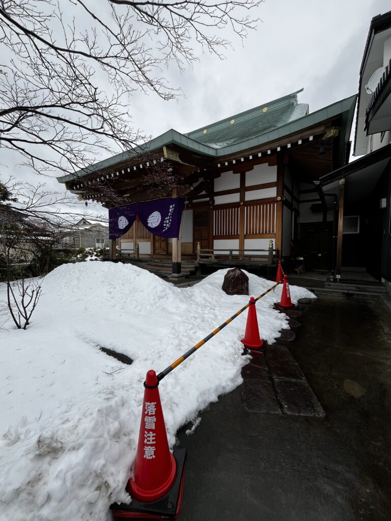 大晦日から新潟市は雪景色となり、お御堂の前も屋根からの雪で閉鎖を余儀なくなりました。