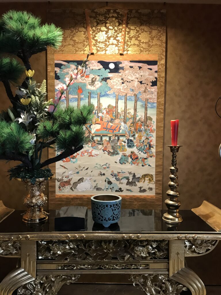 お釈迦さまのご命日は2月15日。今年はちょうど日曜日となりました。当山には、以前総代役の御門徒からお釈迦様涅槃図の掛け軸を御寄進いただきました。大変貴重なものですので普段は大切にしまっておりますが、毎年2月の祥月に庫裡広間の奉掛しております。15日には、是非大勢の方々にその涅槃図の絵解きを聴いて頂きたく涅槃会を計画しております。